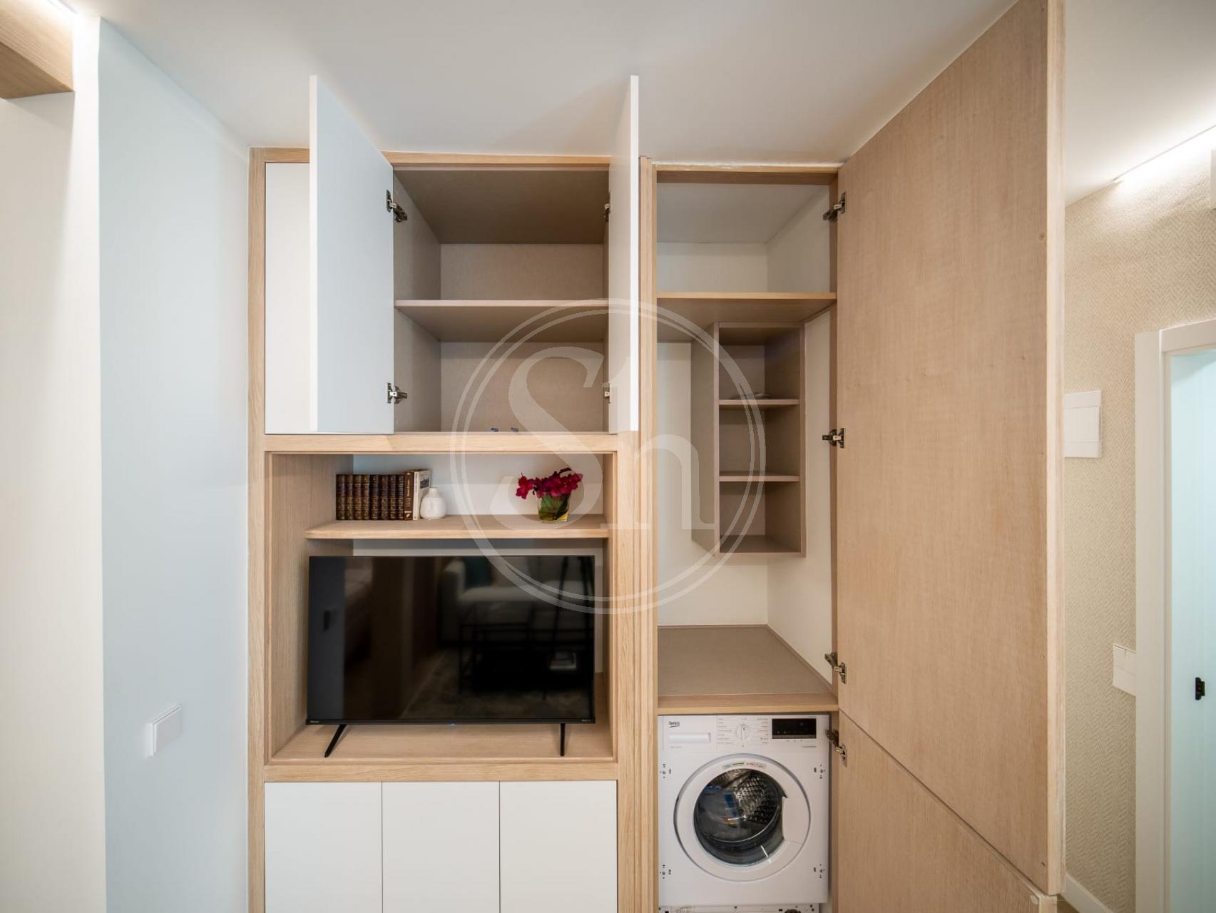 Charming one-bedroom apartment for rent, recently renovated and decorated with attention to detail, combining style, functionality, and comfort. It features a double bed with storage underneath, offering excellent storage capacity, as well as large built-in wardrobes that maximize space.